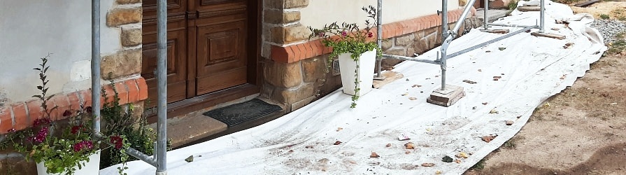 Nem szőtt geotextília betonburkolat védőrétegeként homlokzati munkák során.